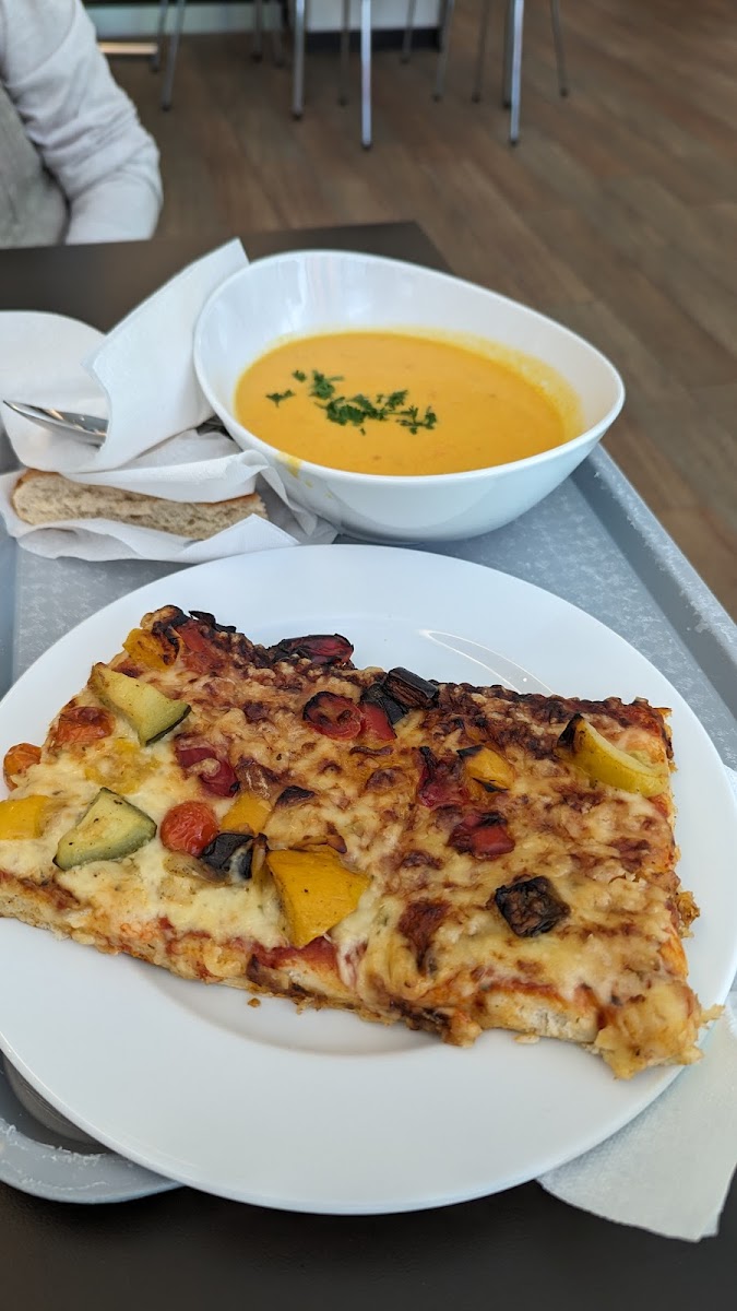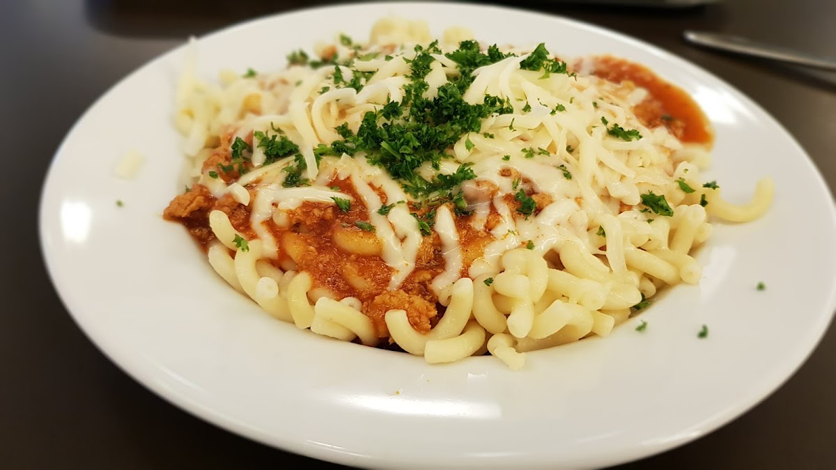 The menu offers hearty, familiar dishes with a focus on comfort: think classics like Carbonara, Spaghetti Bolognese, and Chili Con Carne, alongside some lighter vegetable soups and a few local favorites such as Schnitzel or Kaiserschmarrn for dessert. Portion sizes are generally generous enough to satisfy, and the food is served hot with straightforward flavors — nothing fancy, but consistently good enough for a midday refuel.